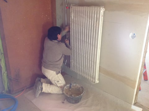 Der Gipser startet im Dachgeschoss