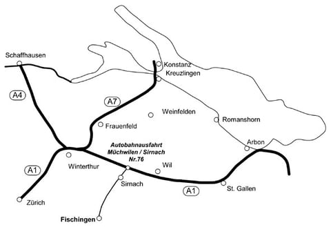 Autobahn A1 bis Ausfahrt Münchwilen/Sirnach Nr.76, Kreisel Richtung Sirnach,
